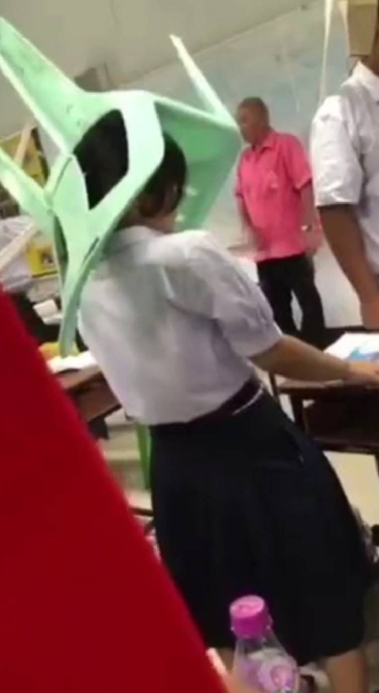 พอตอบไม่ถูกเข้าเรื่อยๆ ก็ไม่มีใครกล้าตอบ ครูก็ด่าเอาด่าเอา แล้วก็ให้ยืนทั้งห้อง ตอนแรกนึกว่าจะให้ยืนเฉยๆ สรุปให้ยกเก้าอี้ไว้บนหัวด้วย ตอนนั้นอึ้งเลย ไม่คิดเลยว่าจะทำ เหมือนจะมีเพื่อนคนหนึ่งพยายามตอบด้วย แล้วครูก็บอกว่าเถียง แล้วก็ด่ากราดเลย”